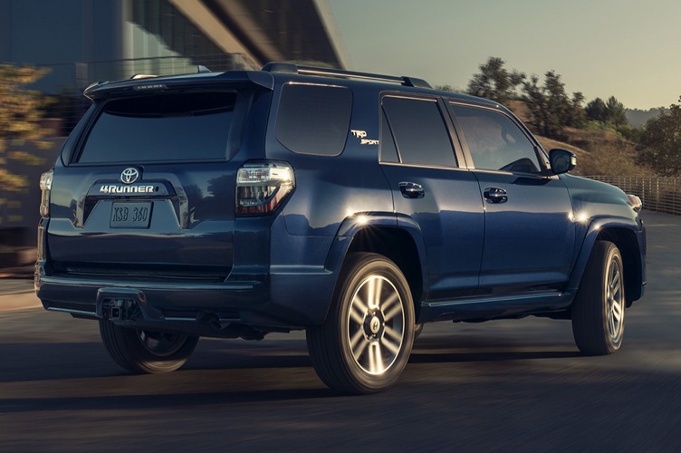 An authentic off-road Sport Utility Vehicle, 4Runner combines heavy-duty body-on-frame construction with a powerful exterior design featuring power moonroof, alloy wheels, roof rails, running boards, LED headlamps (low beam only), LED fog lamps, and more.