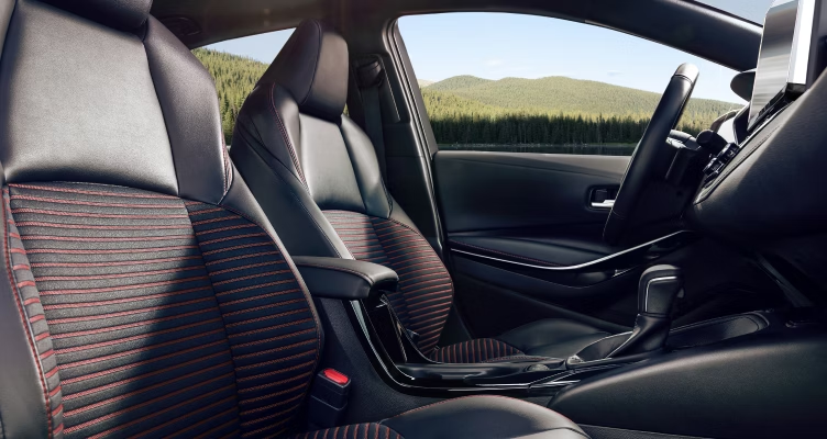 The Corolla LE, Corolla SE and Corolla Hybrid seats feature soft, comfortable cloth covers. For a level up, the Corolla XSE comes with Heated Front and Rear seats that are covered in Softex® fabric.